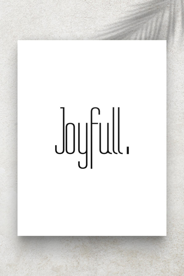 Affiche simple avec le mot Joyfull en noir sur fond blanc.